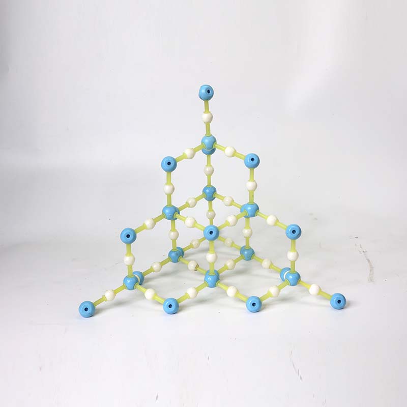二氧化硅晶體模型以硅氧四面體為基本結構單元,展示硅原子與氧原子形成的連續三維空間網狀原子晶體。模型直觀體現其高硬度、高熔點的結構特點,清晰呈現原子排布與共價鍵連接方式,適用于中學化學教學,幫助理解原子晶體的結構與性質。