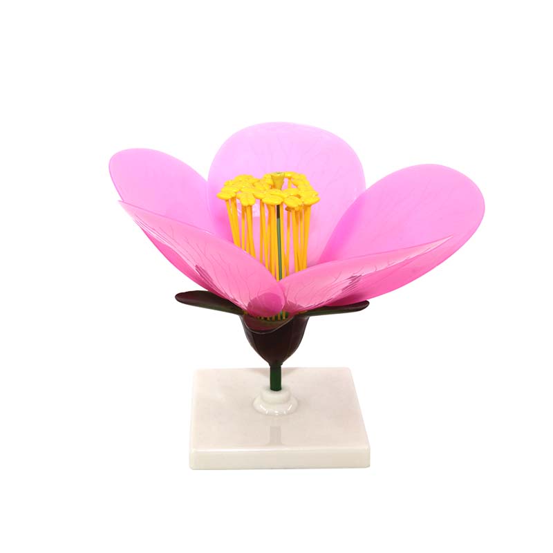 桃花模型按照真實桃花結構放大制作,清晰展示花萼、花瓣、雄蕊(花絲、花藥)、雌蕊(柱頭、花柱、子房)等完整結構,可拆分觀察內部構造,直觀體現花的生殖功能與傳粉受精基礎。結構分明、標識清晰,適用于中小學及高中生物課堂教學與實驗觀察。