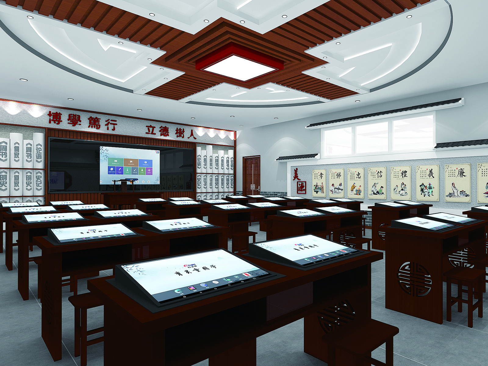 國學智慧教室是指用現代數字技術和國學教育系統軟件資源在中小學校園中營造具有國學特色的,便于全面開展國學教育的專用教室。它以國學課堂軟件系統和國藝交互體驗系統為核心,通過數字化技術的構建和傳統氛圍的塑造,激發師生學習國學的興趣,提升國學教學的科技含量,從而為學校開展中華優秀傳統文化教育提供一個便利的平臺,開創信息化時代國學經典教育的新紀元。