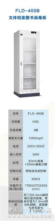 產(chǎn)品詳細(xì)介紹FLD-400B檔案圖書消毒柜 檔案、圖書消毒柜是一種用于檔案文件、圖書資料滅菌的專用設(shè)備。它采用微電腦自動控制技術(shù),能殺滅沾染在檔案文件、圖書資料的大腸桿菌、金黃色葡萄球菌、肝炎病菌、霉菌及各種害蟲,用戶根據(jù)檔案圖書等受污染程度,可選擇不同的的控制時間,進(jìn)行滅菌殺蟲,本產(chǎn)品具有殺蟲消毒效率高、無死角、無污染、壽命長等特點,適用于檔案、圖書、文件、信件等不可高溫消毒物品的表面消毒。 產(chǎn)品特點: ⊙柜體表面采用防靜電噴塑處理,安全,美觀。 ⊙顯示屏為彩屏,美觀大方。 ⊙帶溫濕度顯示。 ⊙臭氧組件采用集成模塊臭氧發(fā)生器,使用壽命超過8000小時。 ⊙微電腦控制,智能啟動,自動消毒,操作簡單。 ⊙托盤要求正面為平板結(jié)構(gòu),以方便取放書籍及資料等。 ⊙根據(jù)消毒書籍的滿載量,可以自行設(shè)定消毒時間,一般為10-60分鐘可調(diào),消毒時間設(shè)置按5分鐘/次跳動。 ⊙消毒滅菌無死角,消毒效率高,濃度穩(wěn)定在滿足消毒要求的最小濃度內(nèi)。分解后,無二次污染。 ⊙通過國家專利認(rèn)證、歐盟CE認(rèn)證 ⊙通過ISO9001質(zhì)量管理體系認(rèn)證。 相關(guān)參數(shù): 型號 FLD-400A FLD-400B 內(nèi)容量 400L 托盤層數(shù) 4層 臭氧發(fā)生量 1000mg/h 電源 220V/50HZ 輸入功率 55W 時間 30-60min消毒+20min臭氧分解 顯示方式 智能數(shù)碼顯示 控制方式 微電腦自動控制 凈重 65KG 外型尺寸(高*寬*深) 1700X570X500(mm) 柜體材質(zhì)說明 A:柜體采用1.0mm冷軋鋼板,全鋼結(jié)構(gòu)。 B:柜體采用1.0mm冷軋鋼板,前門為5.00mm透明鋼化玻璃
