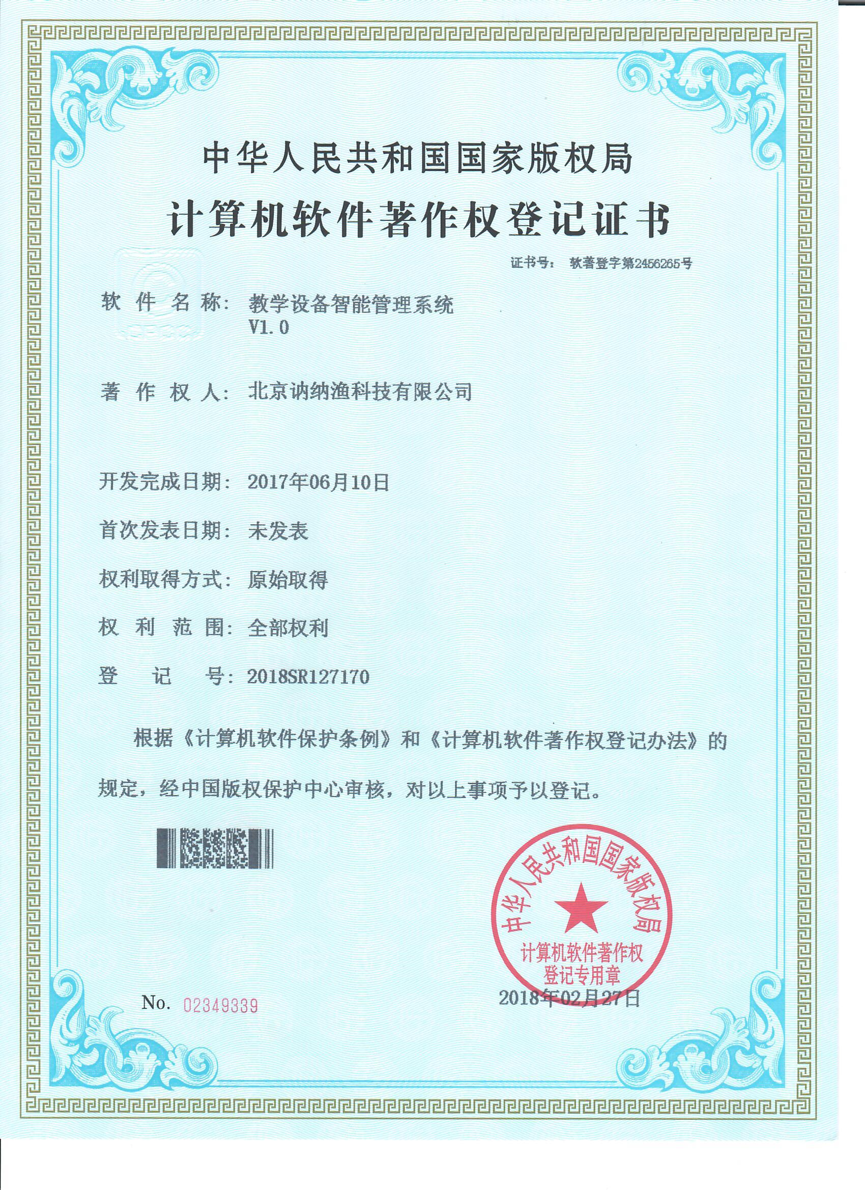 教學設備智能管理系統著作權證