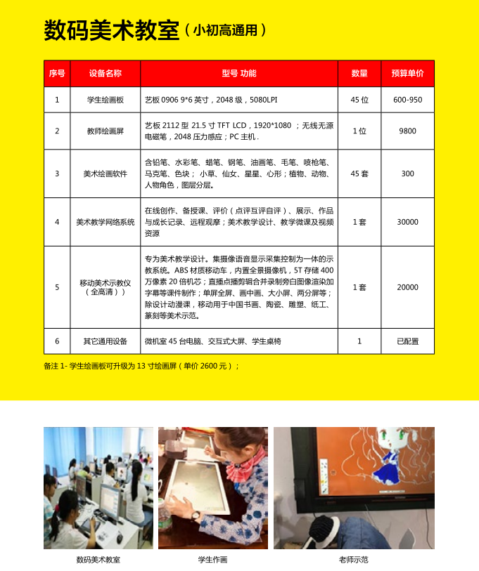 | 擁有自主開發的系列產品,涉及中國傳統文化書畫教室、老師成長和提升的教研產品、增賦減負備授課工具、提升優質資源均衡的結對課堂。自主研發產品:課堂評價-愛評課、美術教絡系統-藝學寶、數字臨摹書法教室-藝學寶、互動結對課堂、名師專遞課堂。配套硬件產品:藝板繪畫屏、藝學寶書法臨摹全貼合屏,產品優勢:數據采集與運用、互聯網+等創新運用在教學和教研,助力英音美薄弱學科的師資水平提升和名師課堂發揮普惠作用。 |