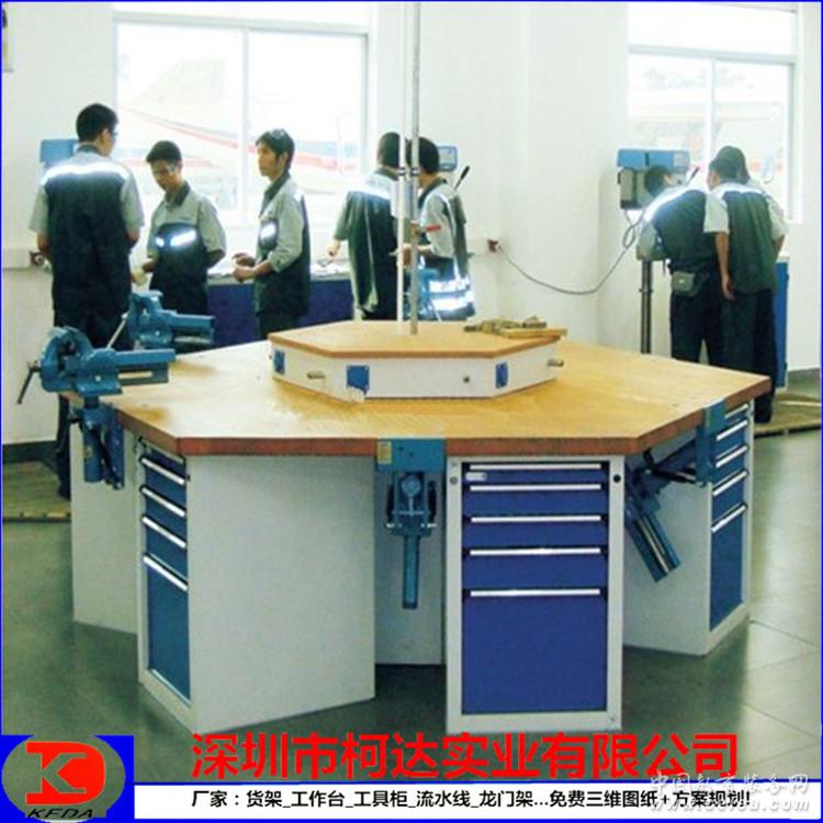 柯達kd-g05六角鉗工臺-工具柜: 六角鉗工臺桌臺面下配置6個工具柜: 1-工具柜規(guī)格:580x525x850mm;