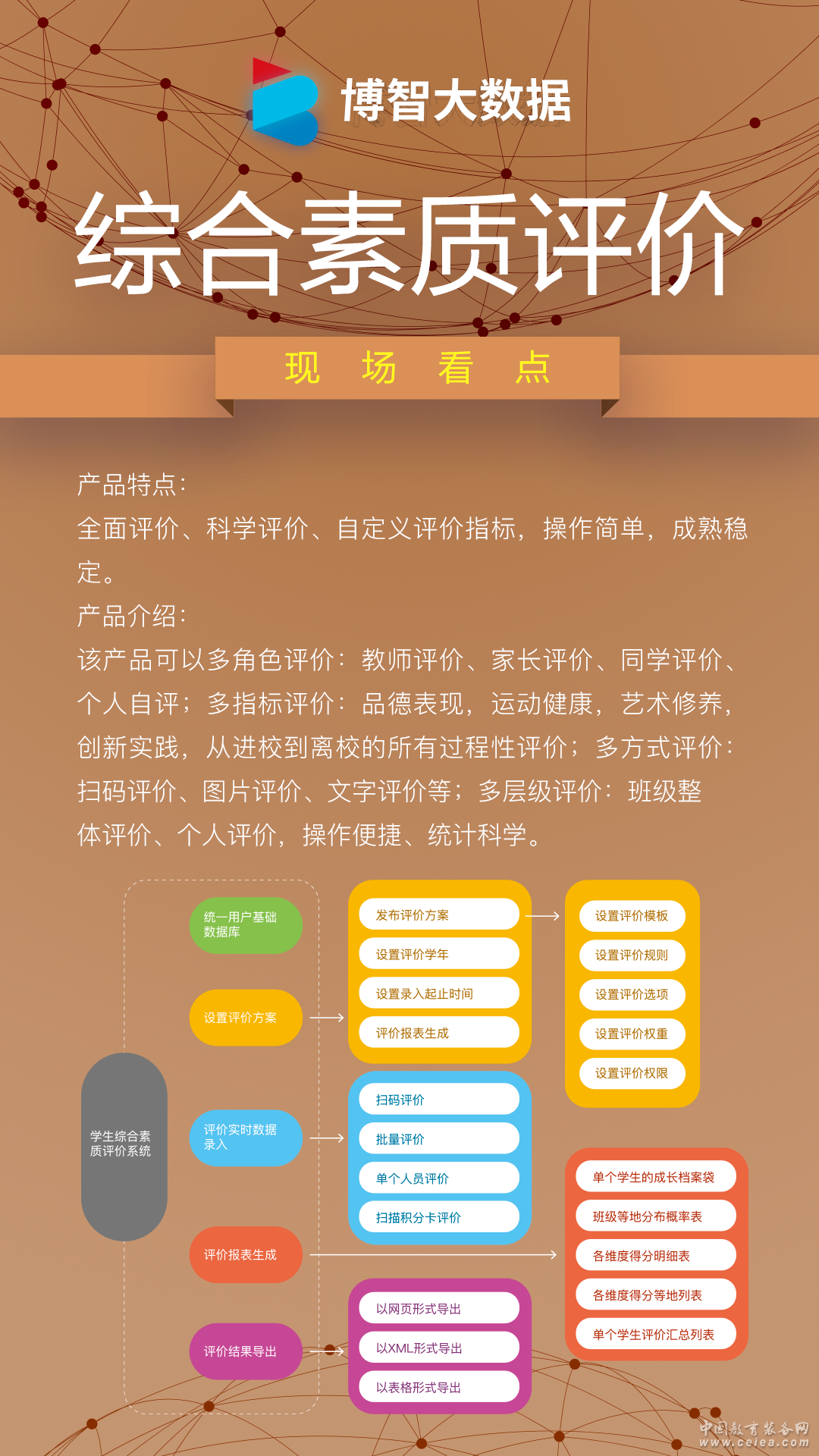 產品詳細介紹博智學生綜合素質測評,該產品可以多角色評價:教師評價、家長評價、同學評價、個人自評;多指標評價:品德表現,運動健康,藝術修養,創新實踐,從進校到離校的所有過程性評價;多方式評價:掃碼評價、圖片評價、文字評價等;多層級評價:班級整體評價、個人評價,操作便捷、統計科學。 產品特點: 全面評價、科學評價、自定義評價指標,操作簡單,成熟穩定。