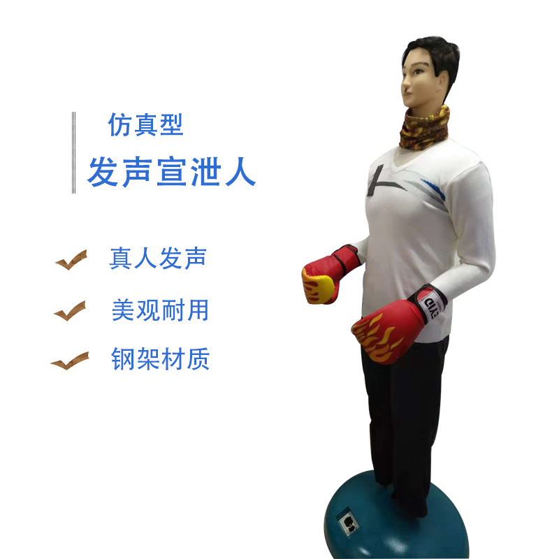 產品詳細介紹男180cm,女175cm,手臂姿勢可以任意調節,可以擺出不同的被擊打姿勢,可以很好的引導宣泄欲望,手指采用五指分開設計,可握拳,可出掌,這些都是為了達到一個更為理想的宣泄對象。一體成型,增加了耐用性,采用進口高緩沖材料,一次性磨具成型,大大提供高了宣泄手感,在宣泄的同時可以很好的保護來訪者。底座采用一次型模具沖壓成型底座,底座尺寸:600*600*180mm,圓形底座,穩定安全美觀。電路部分采用了最新的振動感應技術,可感受到極小的震動,12V安全電壓供電,發出多種不同的求饒聲。極具宣泄動力,釋放壓力 。 1、模擬真人設計,有五官,真人頭發,可以修剪,真人大小,1:1的比例,標準身材,男身高1.8米,可擊打面積1.7米,女身高1.75米,可擊打大面積1.65米; 2、面部采用高分子硅膠合成材料制作,仿真人皮膚設計,富有彈性;真人頭發,頭皮極度仿真; 3、真人真聲設計,當你打擊他的時候可以說出不同的話語; 4、人體采用高分子PU發泡一次完成,整體模具,標準,手感好,內部有鋼架,抗擊打能力強,不宜損壞,采用全自動化新型機器,統一模具,材料來源自己獨特調配,采用特質高熱壓技術一次成型制作,形態穩定,大小統一; 5、底座為金屬加海沙合制而成,自重40公斤,不易打倒。 6、內部電路全新升級,采用最新的無線遙感技術,不用插接220V電源線即可發聲,全身360°均可擊打。 |