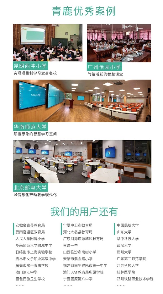 一直以來,青鹿堅持以極簡應用賦能教育,以最簡單高效產品助力師生改變課堂關系,提高課堂效率,促進知識內化。目前,青鹿已與全國多所知名學校聯手合作,為他們提供系統性的教學信息化應用體驗,為課堂教學模式帶來真實的改變。