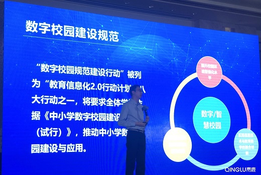 會上,來自華南師范大學(xué)的杜炫杰教授就教育信息化新動態(tài)、中小學(xué)數(shù)字校園建設(shè)、區(qū)域三大課堂建設(shè)及高校新型教學(xué)空間等方面發(fā)表了對于教育信息化2.0的見解。