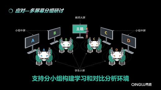青鹿的無限課堂主要包含智慧課堂管理系統(tǒng)、多屏分組研討系統(tǒng)、跨區(qū)域互動系統(tǒng)、多終端接入系統(tǒng)、以及青鹿管家(智能管控)。這些系統(tǒng)共同構(gòu)建了全場景的智能化教學(xué)空間,讓師生體驗到“時空無界限,使用無限制”的智能化教學(xué)模式。