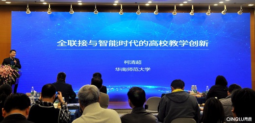 會上,來自華南師范大學(xué)的特邀專家柯清超教授現(xiàn)場分享了《全聯(lián)接與智能時代的高校教學(xué)創(chuàng)新》,提出了“'互聯(lián)網(wǎng)+教育'是在全聯(lián)接環(huán)境下,教師資源、課程與教學(xué)、教學(xué)組織方式的優(yōu)化與超越”的觀點(diǎn),認(rèn)為未來的教育將是全聯(lián)接+大數(shù)據(jù)+AI,人類智能、機(jī)器智能與教育將協(xié)同發(fā)展,共同進(jìn)化。