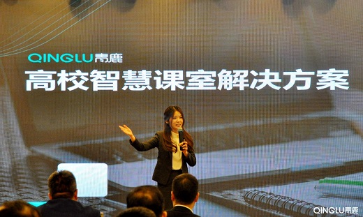 會上,青鹿以華南師范大學(xué)木鐸空間為例深入淺出地介紹了高校智慧教室整體解決方案。