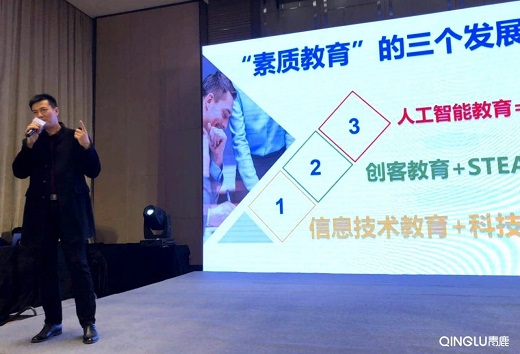 會上,來自長春師范大學、同時任全國創(chuàng)新創(chuàng)業(yè)導師、吉林省教育裝備中心創(chuàng)客教育專家組組長、吉林省計算機行業(yè)商會創(chuàng)客教育分會秘書長的李占超教授發(fā)表了題為《素質教育引領時代》的演講,與在場來賓共同探討素質教育的發(fā)展及教育信息化的未來趨勢。
