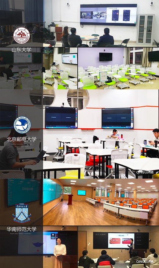 現(xiàn)在,有不少高校已成為這場(chǎng)改造運(yùn)動(dòng)的“先鋒隊(duì)伍”,其中,北京郵電大學(xué)、山東大學(xué)、華南師范大學(xué)、中國(guó)民航大學(xué)等著名高校的智慧教室收到社會(huì)關(guān)注。全新改造后的山東大學(xué)教學(xué)樓,更是獲得了人民日?qǐng)?bào)、山東廣播電視臺(tái)、齊魯晚報(bào)的報(bào)道,成為大家口中的“網(wǎng)紅教室”。