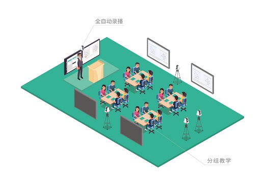 青鹿智慧課堂應用了電子云鏡技術,在課程錄制中,一臺電子云鏡攝像機能夠取代兩臺傳統攝像機,完成全景畫面和特寫畫面的拍攝。教室前后各放置一個云鏡攝像機,就可以完成教師全景、教師特寫、學生全景以及學生特寫四路畫面的1080P高品質拍攝。