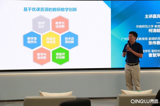 會上,柯清超教授分享的主題是《優課資源與教學創新》,柯教授講述了本次培訓會的意義和背景解讀,他指出,應用技術改善課堂教學效果,提升學生學習體驗,是信息時代學校教學創新的重要內容。