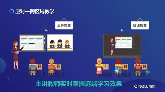 2018年,陜西省西安市教育局提出實(shí)施“名校+”工程,縮小城鄉(xiāng)、區(qū)縣和校際間辦學(xué)差距,推動基礎(chǔ)教育優(yōu)質(zhì)均衡發(fā)展。在青鹿空中智慧課堂的教學(xué)場景下,不同地域的師生可以架起課堂互動和知識傳遞的橋梁。教師實(shí)時掌握到遠(yuǎn)端學(xué)生的學(xué)習(xí)情況,實(shí)現(xiàn)優(yōu)質(zhì)課程互通共享,多地同上一堂課,創(chuàng)設(shè)“一點(diǎn)帶多點(diǎn),一校帶多校”的智慧教學(xué)模式。