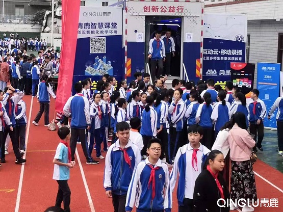 搭載著青鹿空中智慧課堂的大篷車剛開進漢濱區初級中學,就吸引了大批師學生的注意。他們把青鹿相關工作人員團團圍住。一些同學一邊聽青鹿相關工作人員講解這種新型的課堂功能,一邊加入了大篷車里的“課堂互動”。