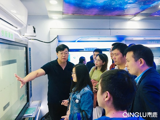 相關工作人員向師生展示青鹿空中智慧課堂的功能應用