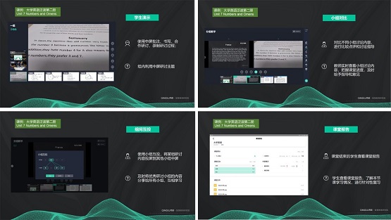 在高校中,語言類課程教學互動環節往往比較少且參與門檻高,學生們主動參與課堂的難度也比較大,往往會有一些同學成為了課堂的“旁觀者”。據廖力院長介紹,青鹿智慧教室的分組研討、學生演示、彈幕互動等功能,能夠有效提高學生的課堂參與度,提升教學效果,為師生減負增效。
