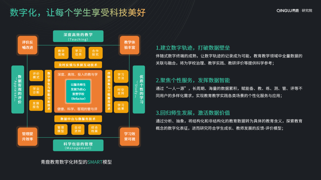 作為教育數字化創新產品與服務提供商,青鹿將聚焦“建立數字軌跡,打破數據壁壘”“聚焦個性服務,發揮數據智能”“回歸師生發展,激活數據價值”目標持續深耕,讓師生享受科技美好。青鹿期待與更多教育界同仁們加強合作交流,共同探索數字化教育教學的更優實踐,切實助力教育數字化轉型。