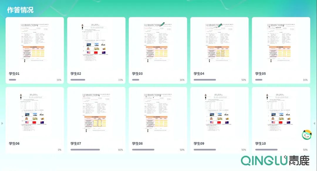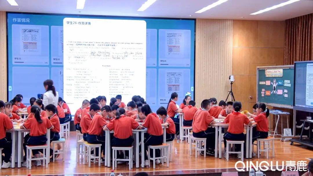 陳悅娟老師結(jié)合大單元教學(xué)內(nèi)容,利用教學(xué)視頻、青鹿智慧紙筆即時測評結(jié)合,把信息技術(shù)與英語課堂深度融合,開展“Culture1 Study Tour —Roots Seeking Trip”為主題的“掌握式教學(xué)”英語示范課�;谇嗦怪腔奂埞P的即時測評,陳老師能夠及時了解學(xué)生的作答進度,更好地把握課堂節(jié)奏;學(xué)生作答詳情的直觀呈現(xiàn),也幫助陳老師更迅速地了解班級整體學(xué)情,更有效地開展教學(xué)。