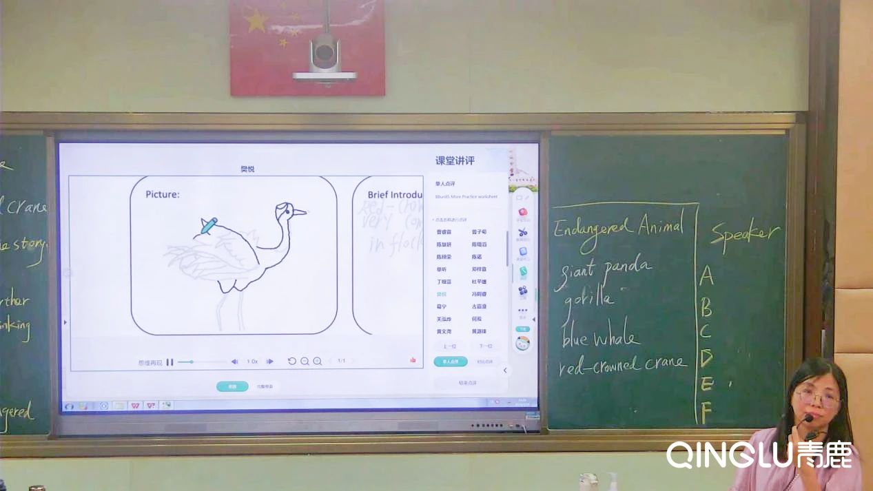 潘老師通過課前布置任務,讓學生用智能筆繪畫瀕臨滅絕的動物,并對動物進行簡單介紹和瀕臨滅絕的原因,作為課堂引入。