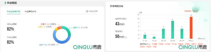 “雙減”政策下,作業(yè)管理從作業(yè)設(shè)計到學(xué)生作答、教師批改等環(huán)節(jié)提出明確的要求。青鹿智慧作業(yè)以實際教學(xué)需求出發(fā),量化作業(yè)數(shù)據(jù)分析指標: