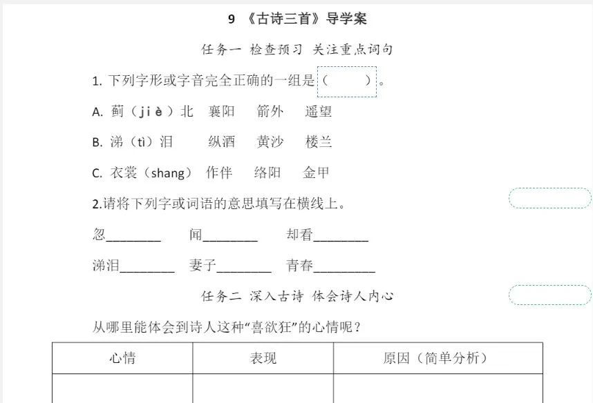 今天,為大家分享的是一節小學五年級語文的智慧紙筆課例——《古詩三首》。