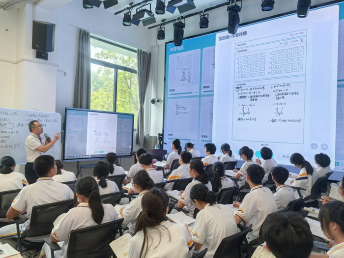 在教學(xué)示范課環(huán)節(jié),惠州市第一中學(xué)余軍老師精心呈現(xiàn)了一節(jié)主題為《二次函數(shù)與一元二次方程、不等式》的初高中銜接示范課,課堂中使用青鹿智慧紙筆系統(tǒng),同步展示學(xué)生課堂練習(xí)的作答情況,并及時(shí)觀察和點(diǎn)評(píng),將“以學(xué)生為主體,教師為主導(dǎo)”的新課改理念貫穿于整堂課,將信息技術(shù)與傳統(tǒng)教學(xué)相融合!
