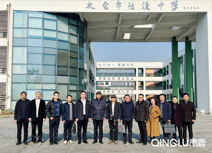 調研組在太倉市陸渡中學書記、校長沈兵等校領導的陪同下,參觀陸渡校園,共話智慧教育。