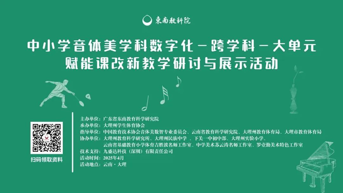 為深化新時代課程改革,探索音體美學科數字化、跨學科融合與大單元教學實踐,4月18日至20日,由中國教育技術協會音體美數智專業委員會、云南省教育科學研究院、大理州教育體育局、大理市教育體育局聯合指導,廣東省東南教育科學研究院主辦,大理州教育科學研究所,大理州民族中學等單位協辦的“全國中小學音體美學科數字化-跨學科-大單元-賦能課改新教學研討與展示活動”圓滿舉行。