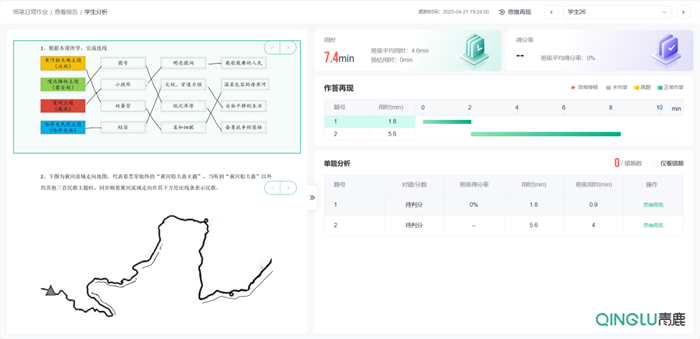 課堂上,伍老師依托青鹿智慧紙筆系統,檢測學生們對不同音樂主題的(樂器音色、音樂形象)歸納及對不同樂器音色的聽辨。學生在印有點陣碼的學習單上書寫,筆跡通過智能筆實時傳輸至課堂大屏。教師全程動態監測學生作答過程,精準捕捉個體差異。