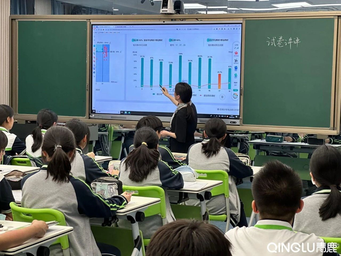 活動現場,數學組學科帶頭人沈秋萍老師運用青鹿智慧紙筆技術開展“試卷分析課”。整堂課以“整體思想”為引領,層層深入剖析分式混合運算與分式方程應用兩大核心知識點,并巧妙引出反比例函數意義的理解,展現出清晰的知識脈絡與思維進階路徑。