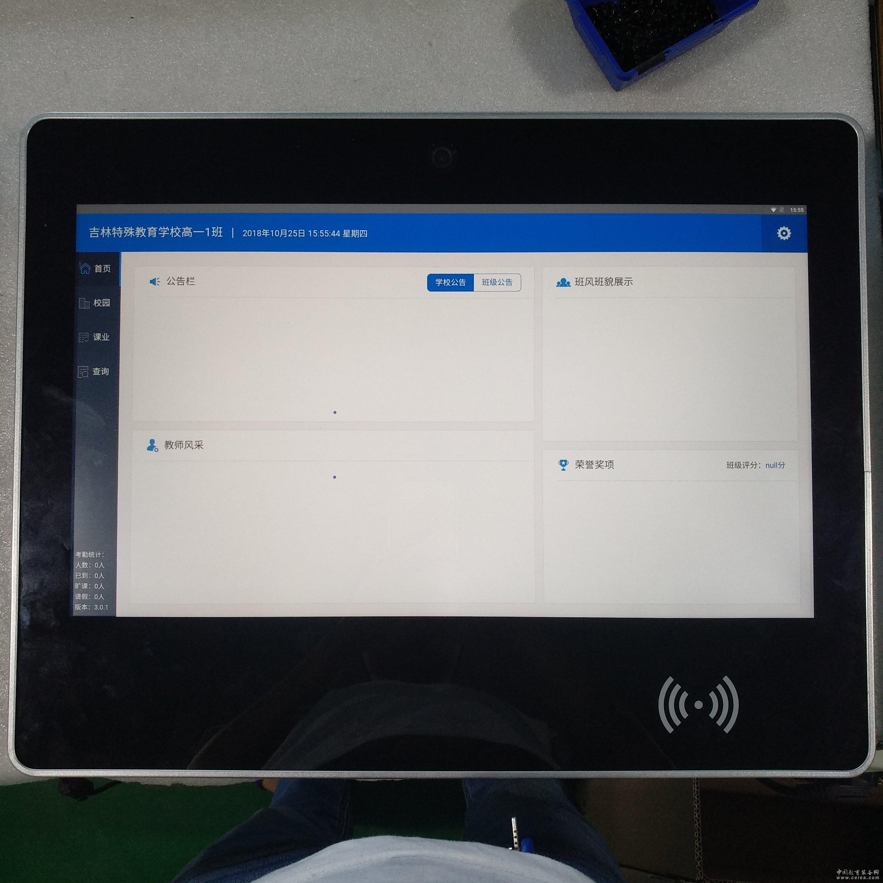 為每個(gè)教室配置一個(gè)前端顯示觸摸屏,安裝在教室門口,用來顯示班級(jí)信息,當(dāng)前課程信息,教室環(huán)境信息以及學(xué)校的通知信息,為學(xué)生和老師提供了便利。