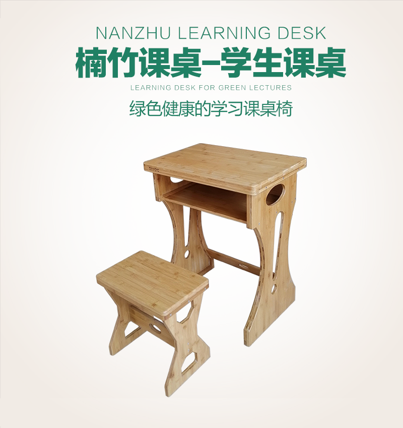 產品詳細介紹楠竹課桌采用實心楠竹碳化壓制打造而成,表面細膩、保留楠竹原來的紋理。桌面四角圓弧過渡;課腳采用“C”字架構組合,牢固、美觀、實用。