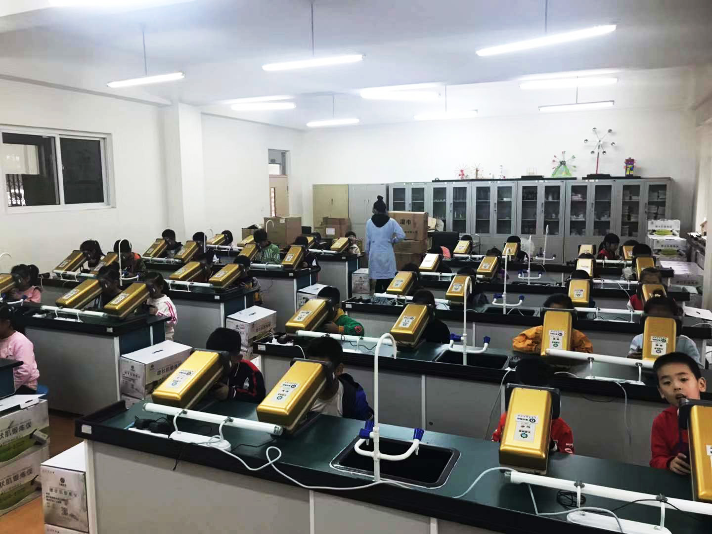 兒童青少年每天大部分時間在學校度過,通過狠抓落實校園近視防控,才能為教育新發展新跨越開好局、起好步、奠好基,才能讓全國近視防控工作有突破性進展。永康學生近視防控教室,拿出一間教室,放置30-50臺永康視力提升機,學生按班級建制每周進行一次20-40分鐘的訓練,一般經過1-2個月5-10次訓練,會達到裸眼視力平均提升2行,近視率平均下降10%以上的良好效果。這間教室,適用于所有學生。不近視的學生,經常參加訓練,可以預防近視的發生;近視的學生,通過視力提升訓練,能夠控制近視度數,提升視力。