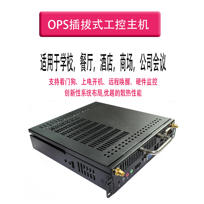 產品詳細介紹   本產品是一款超薄的OPS 整機,基于 Intel 第5代Mobile U系列超低功耗平臺的 CPU,支持 WinXP、Win7、Win8、Win10 和 Linux 等操作系統; 整機采用合金材質并做陽極黑色氧化,外型小巧、超薄、結構簡單,I/O和擴展接口豐富,且配備OPS插槽,是一款為電子教育白板和會議白板量身打造的產品。