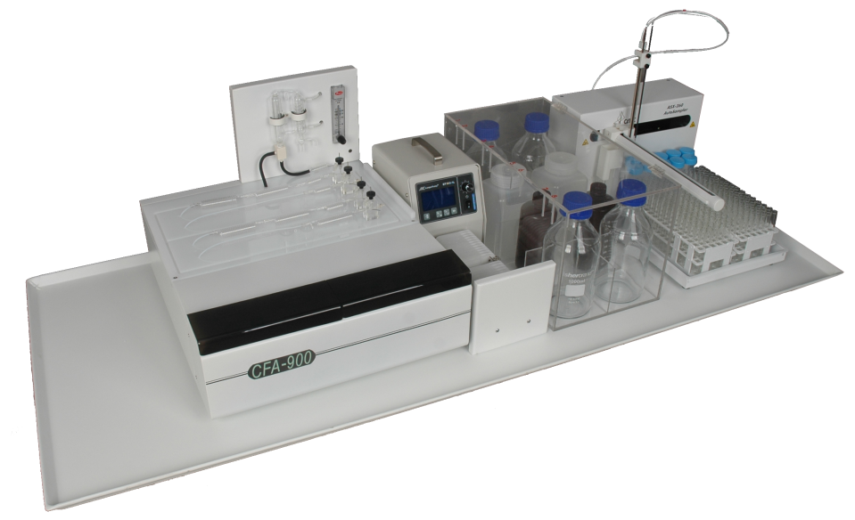 產品詳細介紹工作原理: 1)*儀器采用SFA(氣泡間隔流動)技術原理; 2)*無需六通閥定時進樣; 3)*無需樣品與反應試劑過濾脫氣等前處理工作; 4)待檢樣品與反應試劑在蠕動泵的推動下進入化學反應模塊,在密閉的管 路中連續(xù)流動,被氣泡按一定的間隔規(guī)律地隔開,并按特定的順序和比例 混合、反應,待顯色完全后進入流動檢測池進行光度檢測。 自動進樣器(1套) 化學反應模塊(4套) 蠕動泵(1套) 檢測器(4套) 數據處理工作站(含計算機及打印機) 檢測項目: 分析方法: 所有項目均采用國標方法。 總氰化物: 在線蒸餾-紫外線消化 異煙酸-巴比妥酸分光光度法 揮 發(fā) 酚: 在線蒸餾 4-氨基安替比林分光光度法 硫 化 物: 在線蒸餾 亞甲藍光度法 陰離子洗滌劑: 亞甲藍分光光度法 |
