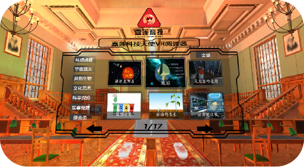 產品詳細介紹打造沉浸式閱讀體驗,將VR(虛擬現實)技術與公共閱讀完美融合。通過VR將傳統閱讀資源場景化,讀者身臨其境在虛擬場景中感受文字、圖片、視頻無法呈現的沉浸式體驗,觸碰書本中所描述的事物。與場景中的內容互動,讓閱讀更真實、讓閱讀既高效又有趣!