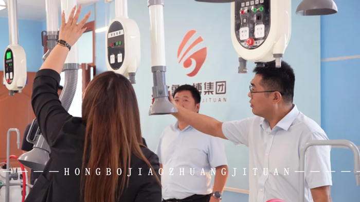 在參觀過程中,集團負責人向張主任詳細介紹了齊魯宏博在教育裝備領域的探索與實踐,分享了我們在技術研發、產品創新、市場布局等方面的最新成果。