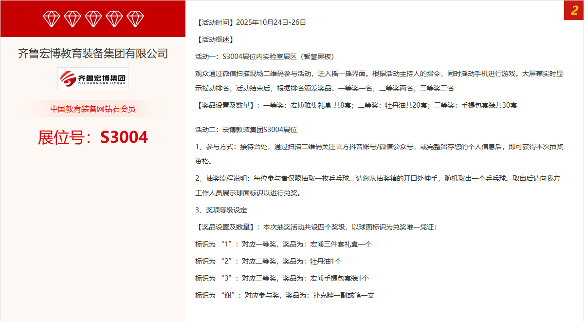 展會期間,親臨宏博展位參與互動體驗,即有機會獲得我們為您精心準備的特色禮品,以感謝各位教育伙伴一直以來的支持與關注。