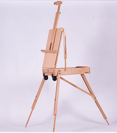 適用于中小學美術教學用;箱內配調色板,箱蓋可支起作畫架用,并有夾層來存放圖紙,用來存放繪畫工具、顏料等,箱體有提把,背帶由寬度≥ 25mm 的混紡編織帶或帆布制成,長短可調;腿:三腿折疊式;材質:優質實木。