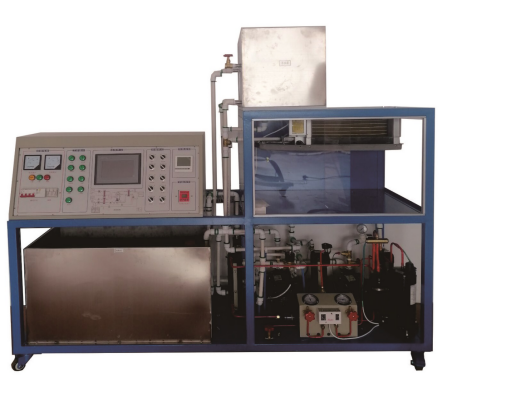 四、系統組成 設備整體與實際地源熱泵中央空調系統結構相同,采用開放式鋼框架結構,各部件布局合理操作方便。控制系統由電控柜、可編程控制器、壓力采集模塊、溫度采集模塊、數據采集點、PLC編程軟件、中央空調組態監控軟件組成。 1、地源熱泵制機組 由2P壓縮機、冷凝器、儲液罐、熱力膨脹閥、視液鏡、干燥過濾器等組成。管路中視液鏡可觀察制冷劑狀態等設備組成。為整機系統提供冷源,采用一套分水器對冷量進行分配調節。 2、 室外熱交換器: 放地耦管換熱方式,盤管與室內循環水換熱系統形成閉式系統。利用地下水中熱量的閉路循環系統,它通過循環液體在封閉地下埋管中的流動,實現系統與大地之間的換熱。 3、空氣調節系統 空氣調節系統由、模擬房間、風機盤管,一臺水泵、不銹鋼換熱器組等組成,主要完成空氣調節作用。(室內送風風機轉速可調),主要完成制冷機組冷卻熱交換,為室內提供適當的溫度 4、主機系統 整個中央空調采用PLC作為主控機,由計算機通過通信線與PLC進行通信,從而控制整個空調的運行,也可通過網絡實現遠程控制。空調的運行參數由傳感器及變送器進行采集,并通過A/D模塊轉換后送入PLC中,再由PLC送到計算機中進行實時顯示監控。 |