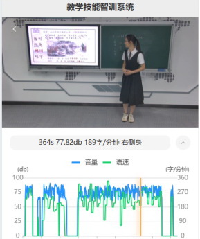 根據(jù)講課內(nèi)容,系統(tǒng)自動(dòng)分析語(yǔ)音、語(yǔ)速、姿態(tài)的教學(xué)技能應(yīng)用隨時(shí)間的變化。教師回看視頻可以發(fā)現(xiàn)變化規(guī)律,也可以直接點(diǎn)擊時(shí)序圖上的某個(gè)數(shù)據(jù)位置,同步切換視頻到相應(yīng)時(shí)刻進(jìn)行細(xì)致研究。