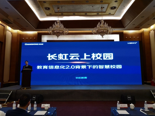 推進教育強省和制造強省建設”為主題,包括交流會和展覽展示兩大板塊。會上,長虹教育作為教育裝備領軍品牌分享了“長虹云上校園-教育信息化2.0