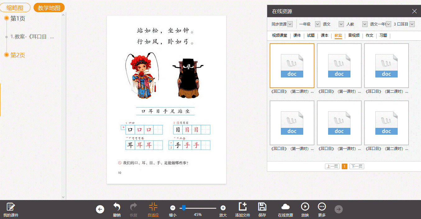 在課件模式下,老師可以自行創(chuàng)建課件,隨時插入在線資源中的現(xiàn)成課件、試題、各種學(xué)科工具,調(diào)動課堂氛圍的互動教學(xué)游戲等。