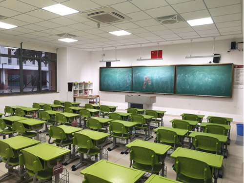 改造后的教室融入了智能照明、新風(fēng)、空調(diào)、以及智能微環(huán)境系統(tǒng),使教室的光環(huán)境始終保持健康舒適的范圍,從而保護(hù)師生的視力健康;智能微環(huán)境監(jiān)測(cè)系統(tǒng)對(duì)教室內(nèi)的溫濕度、二氧化碳濃度、空氣質(zhì)量等環(huán)境數(shù)據(jù)進(jìn)行實(shí)時(shí)監(jiān)測(cè),并在需要的時(shí)候控制開啟空調(diào)、新風(fēng)等處理設(shè)備,優(yōu)化室內(nèi)空氣環(huán)境。