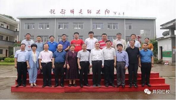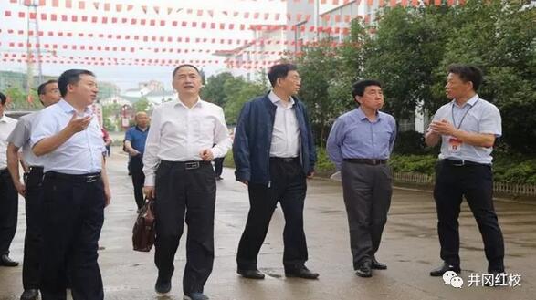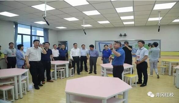 中國教育發展基金會張中原秘書長、中國教育裝備行業協會李興植常務副會長、江西省教育廳葉寶凌副巡視員、省教育技術裝備站傅小軍主任、山東建榮教學設備有限公司李建榮總經理、神州中創(北京)科技有限公司王東亮董事長一行到現場進行錄播教室建設工程驗收。吉安市教育局袁克強副局長、井岡山市人民政府王克康副市長、井岡山市教體局龍平局長以及學校領導等人員陪同參加驗收。