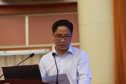 市教育技裝中心黨總支書記、市課程協(xié)作組副主任姚友明宣讀重慶市第二批高校精品在線開放課程認定結(jié)果