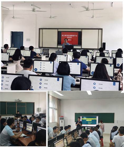 三位培訓老師通過講解、演示和現場答疑等多種方式,給廣大學員培訓了平臺的功能設置、角色分配、權限管理、校區管理、期初建賬、數據填報、數據審核、裝備管理、達標測算、數據統計等內容,全體參訓人員通過演示、實踐操作、互動交流等切實掌握了省平臺的操作與應用。