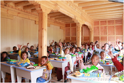儀式結(jié)束后,藏族孩子們興高采烈的搬進(jìn)了新教室,孩子們略帶羞澀的眼神仿佛在告訴大家,今天是多么幸福的一天。